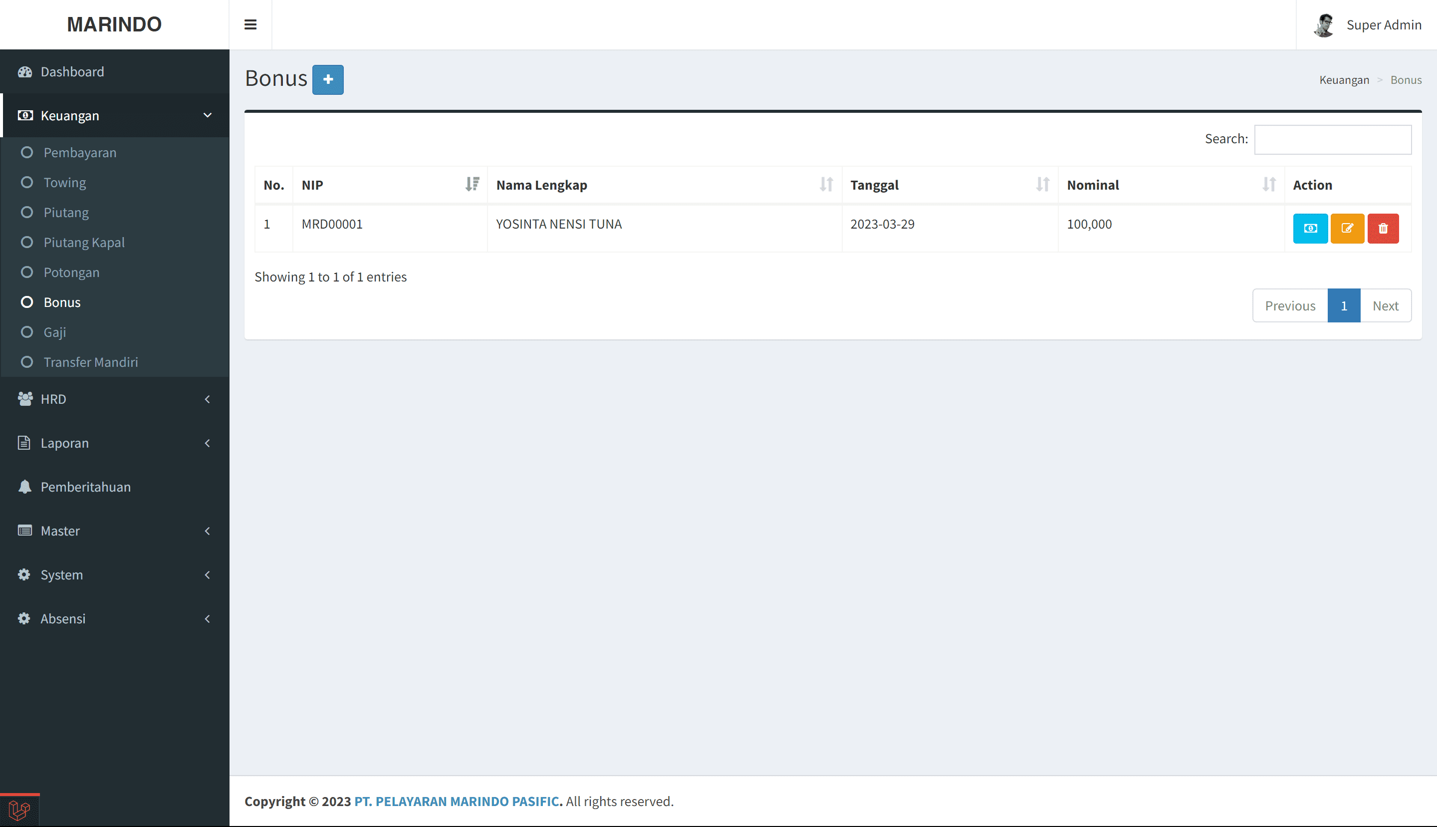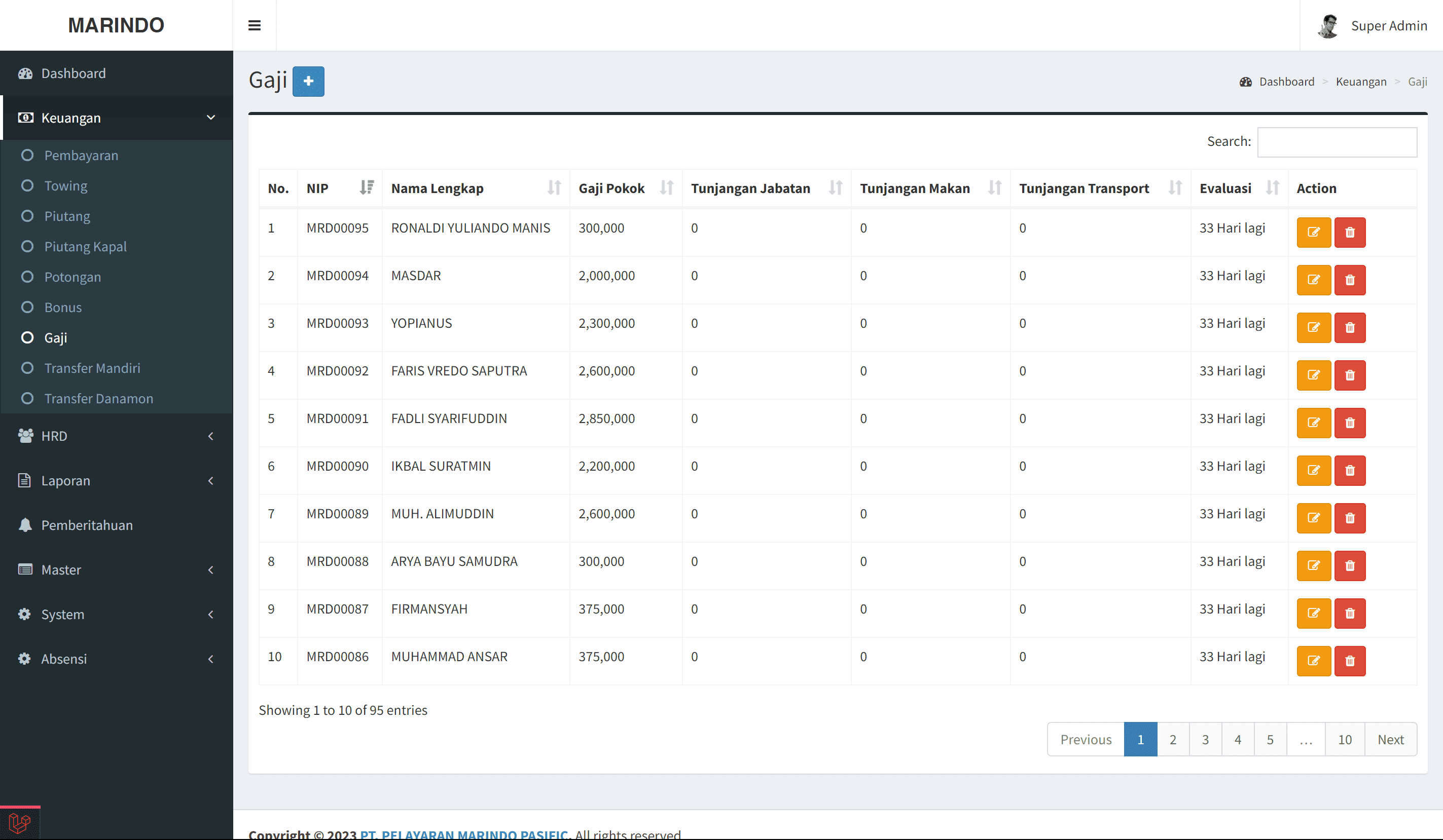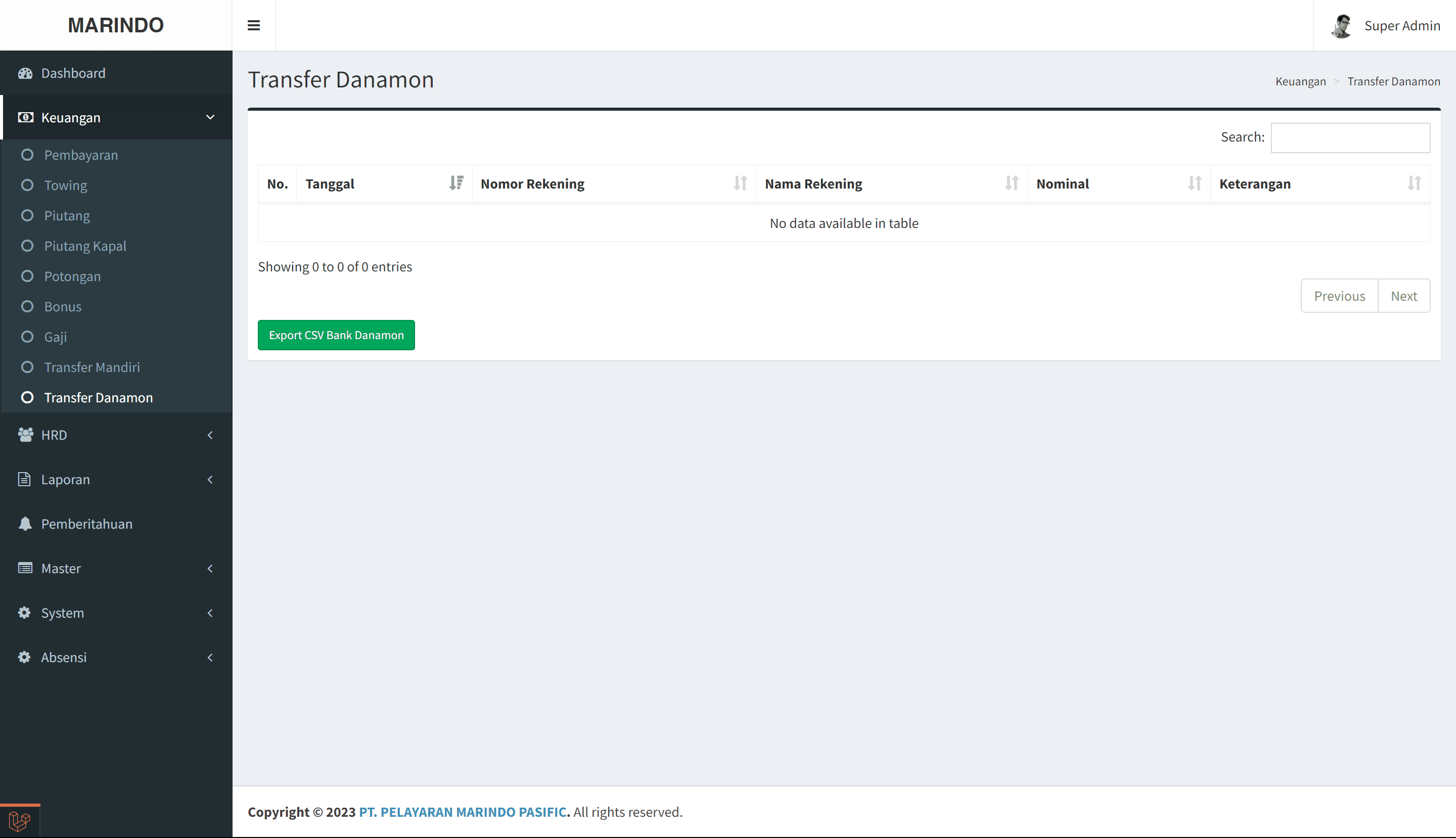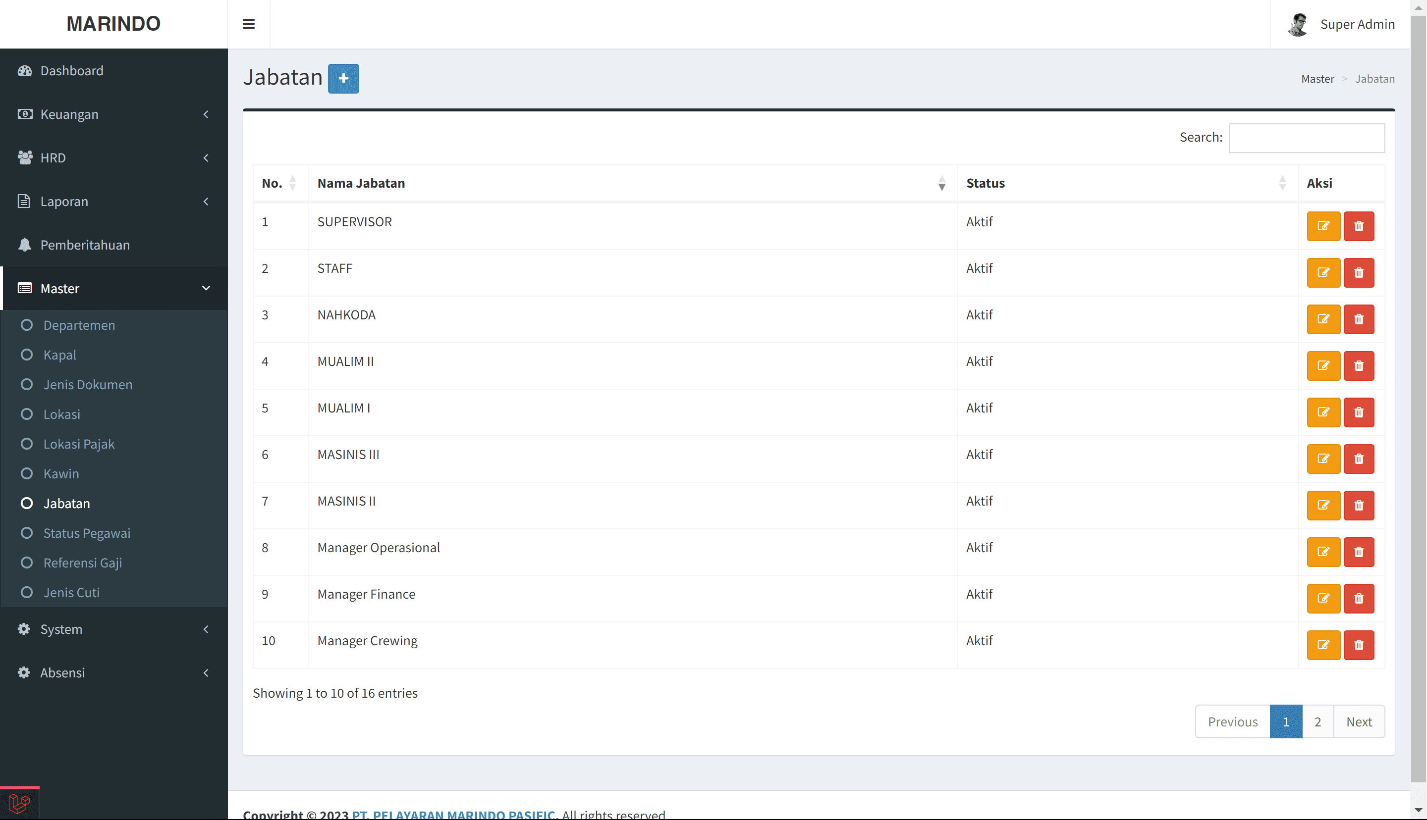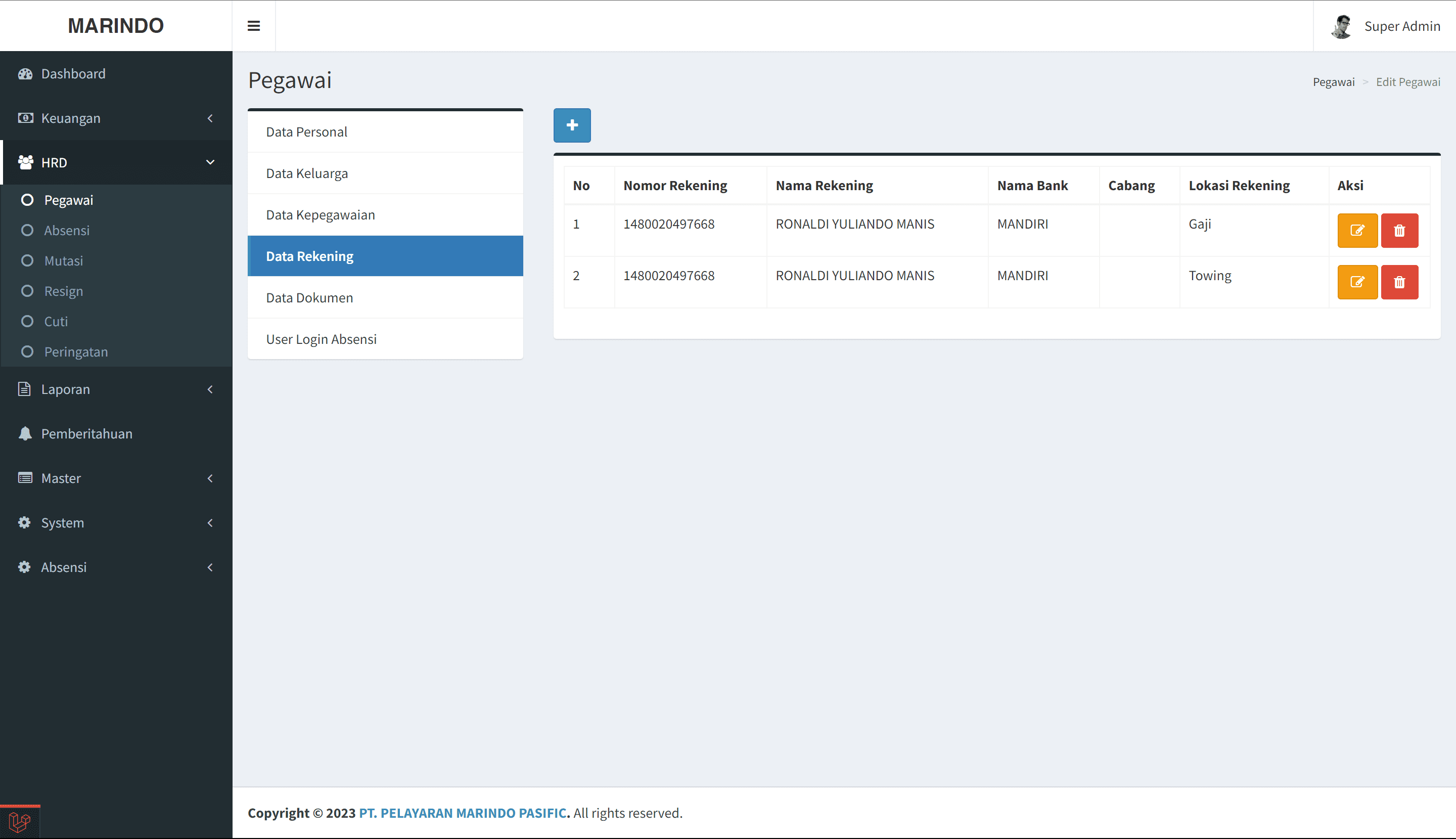 Data pengaturan absensi untuk MARINDO PAYROLL