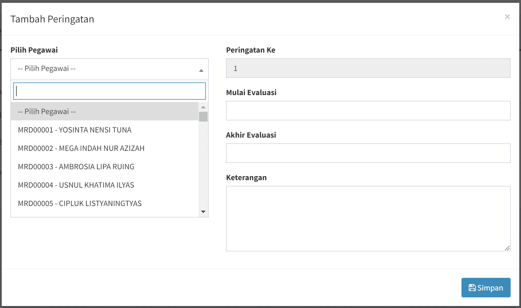 Tanggal AwaldanTanggal Akhirguna menampilkan data sesuai dengan tanggal yang diinginkanPada halaman attendance menampilkan data