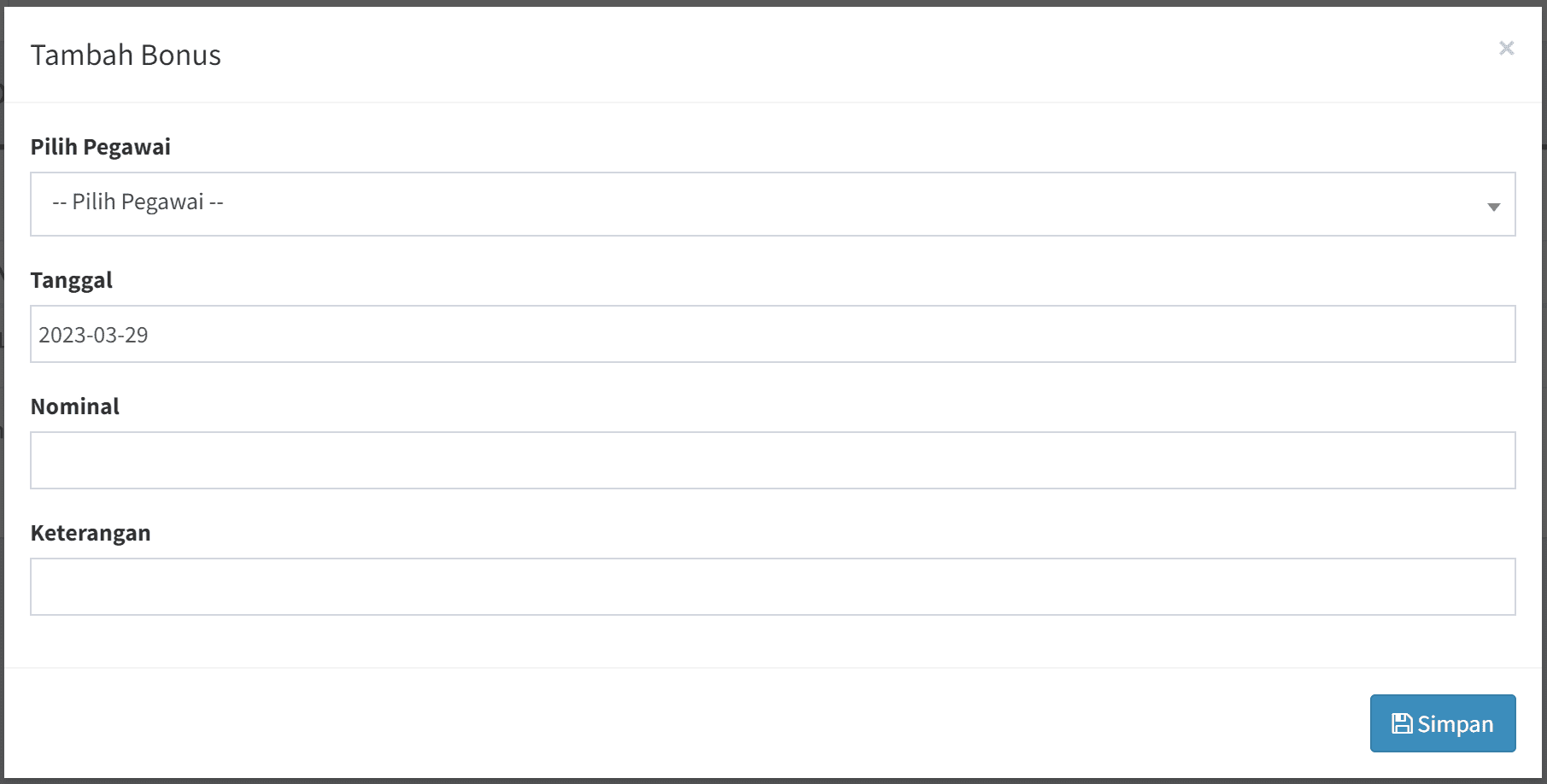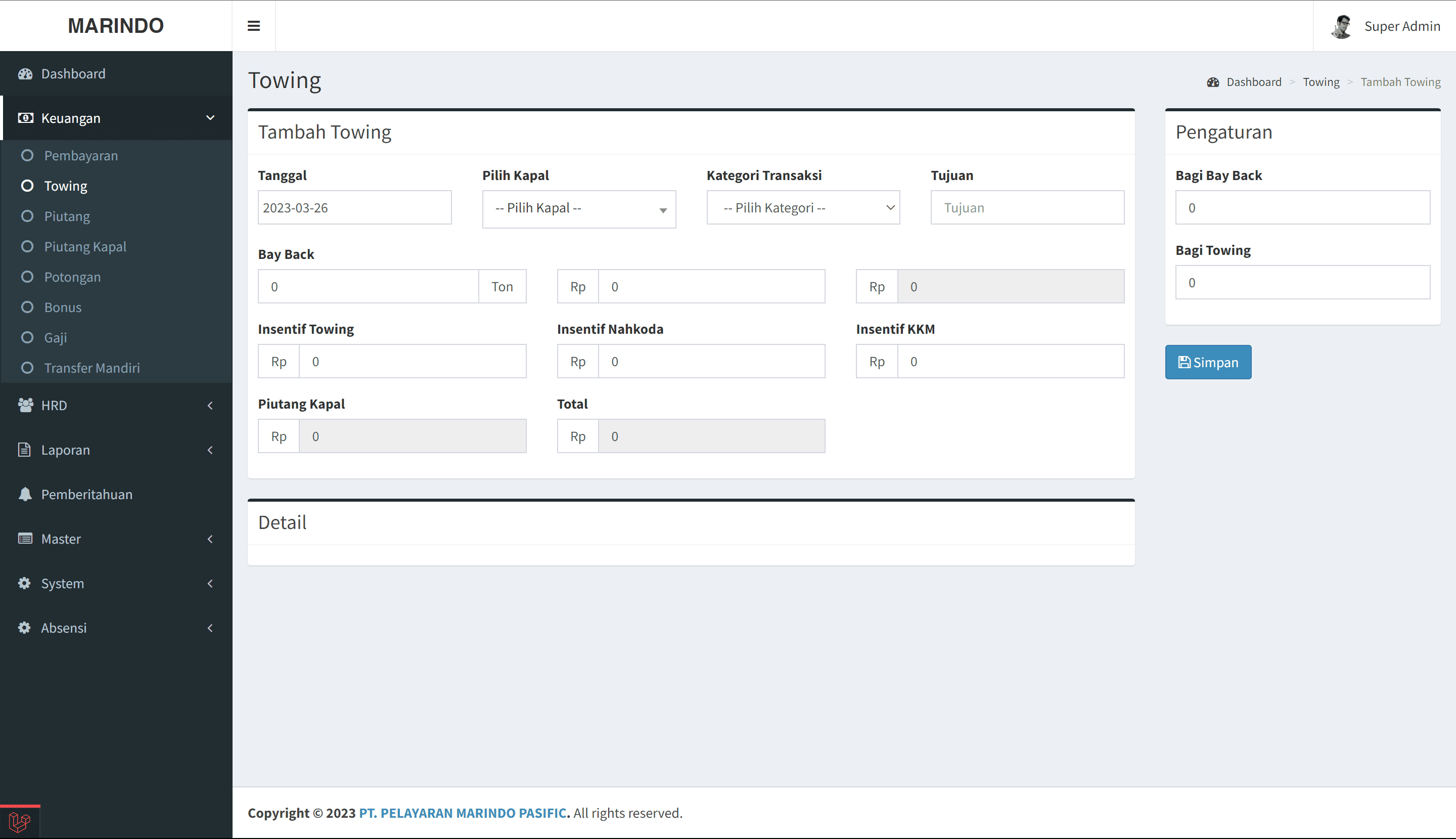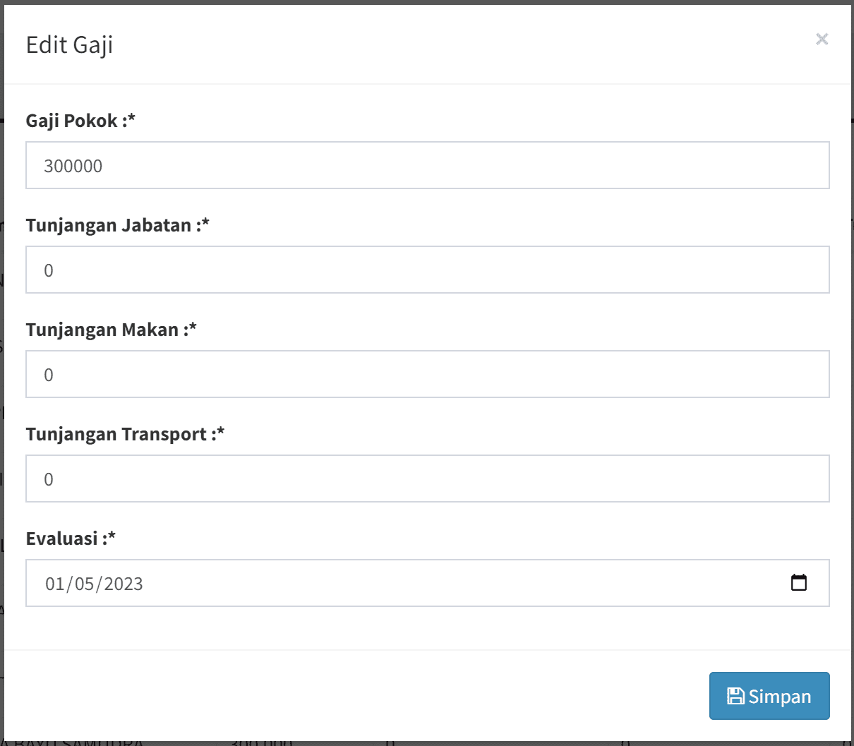 Setelah memilih periode pembayara, maka akan muncul Form Detail Pembayaran, Pada form ini admin bisa