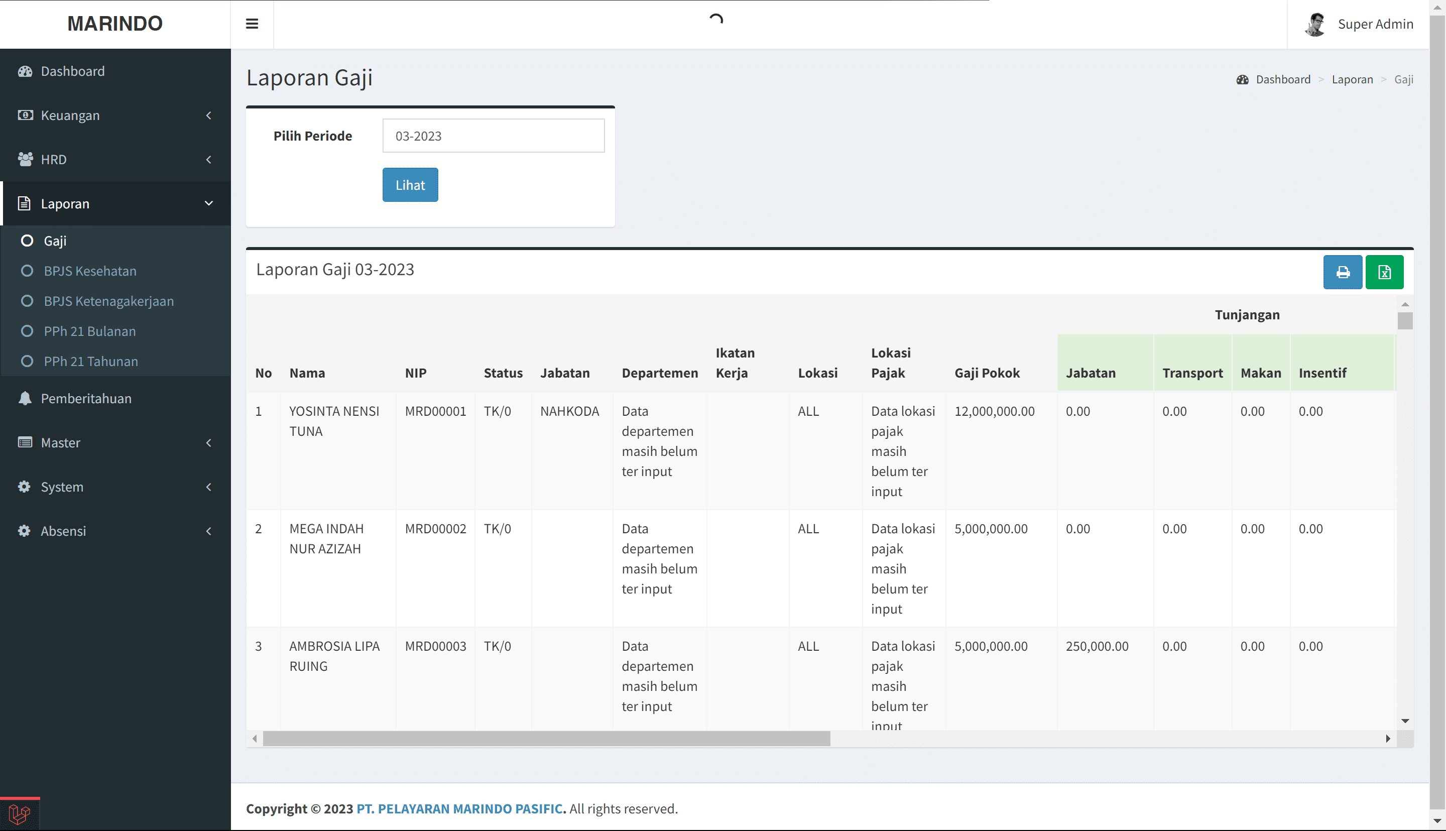 Keseluruhan data laporan dari gaji, bpjs, serta ppn 21