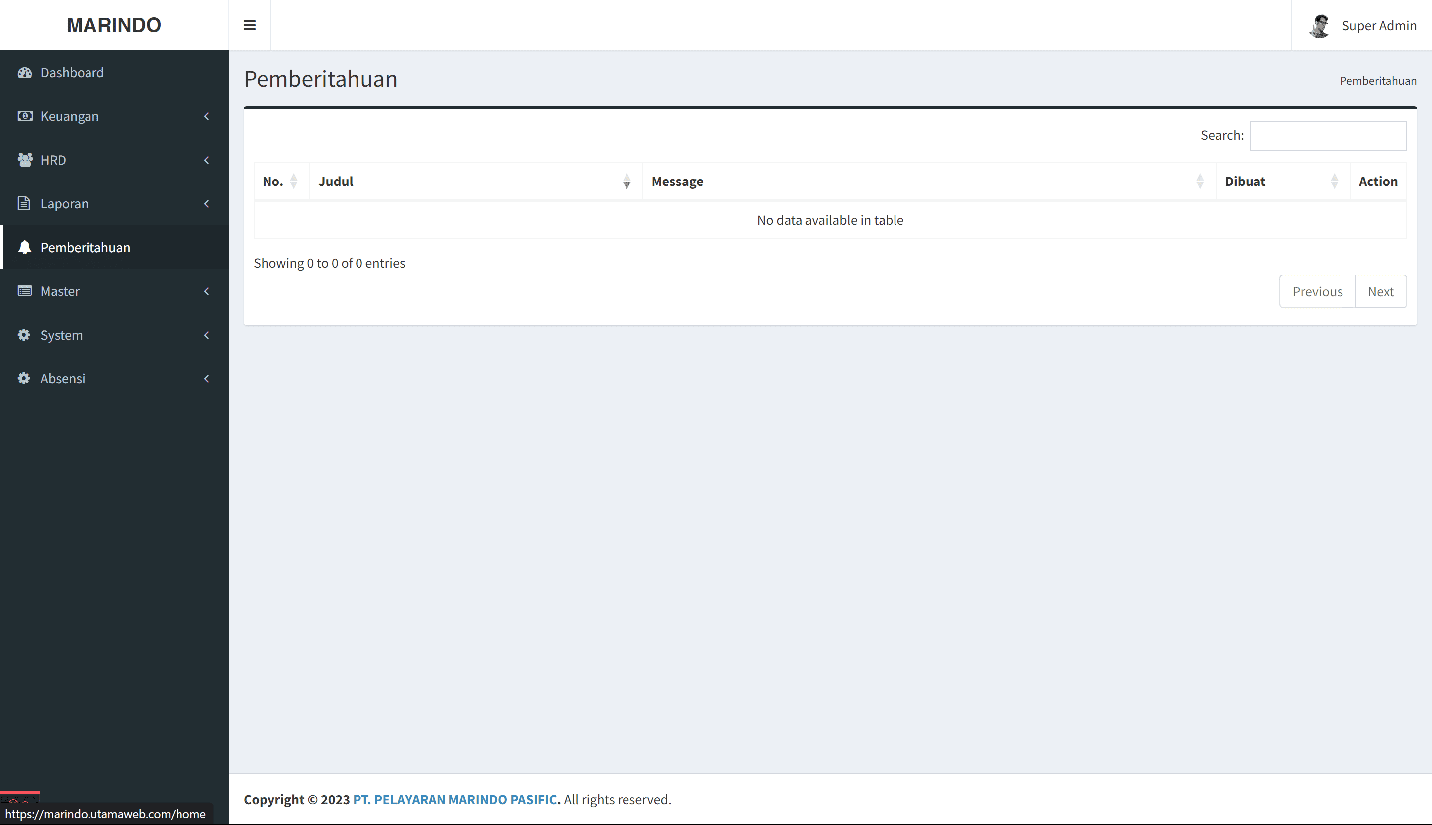 Menampilkan notifikasi dari setiap perubahan yang terjadi, dengan menampilkan No, Judul, Message, Dibuat .