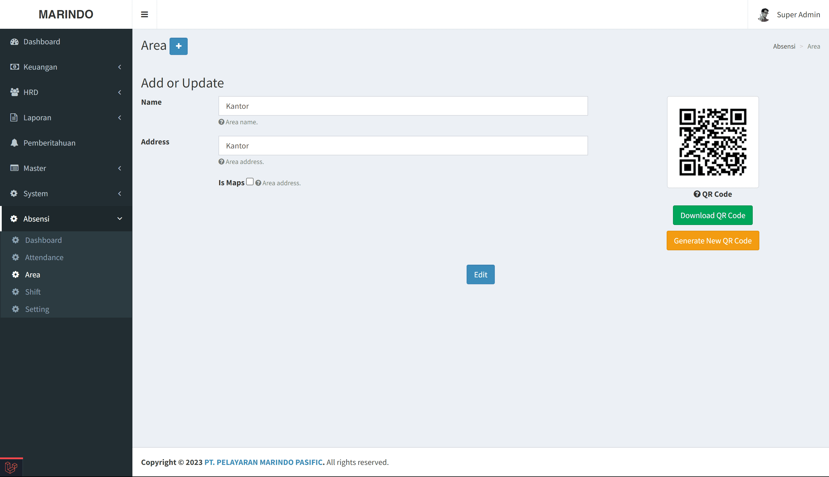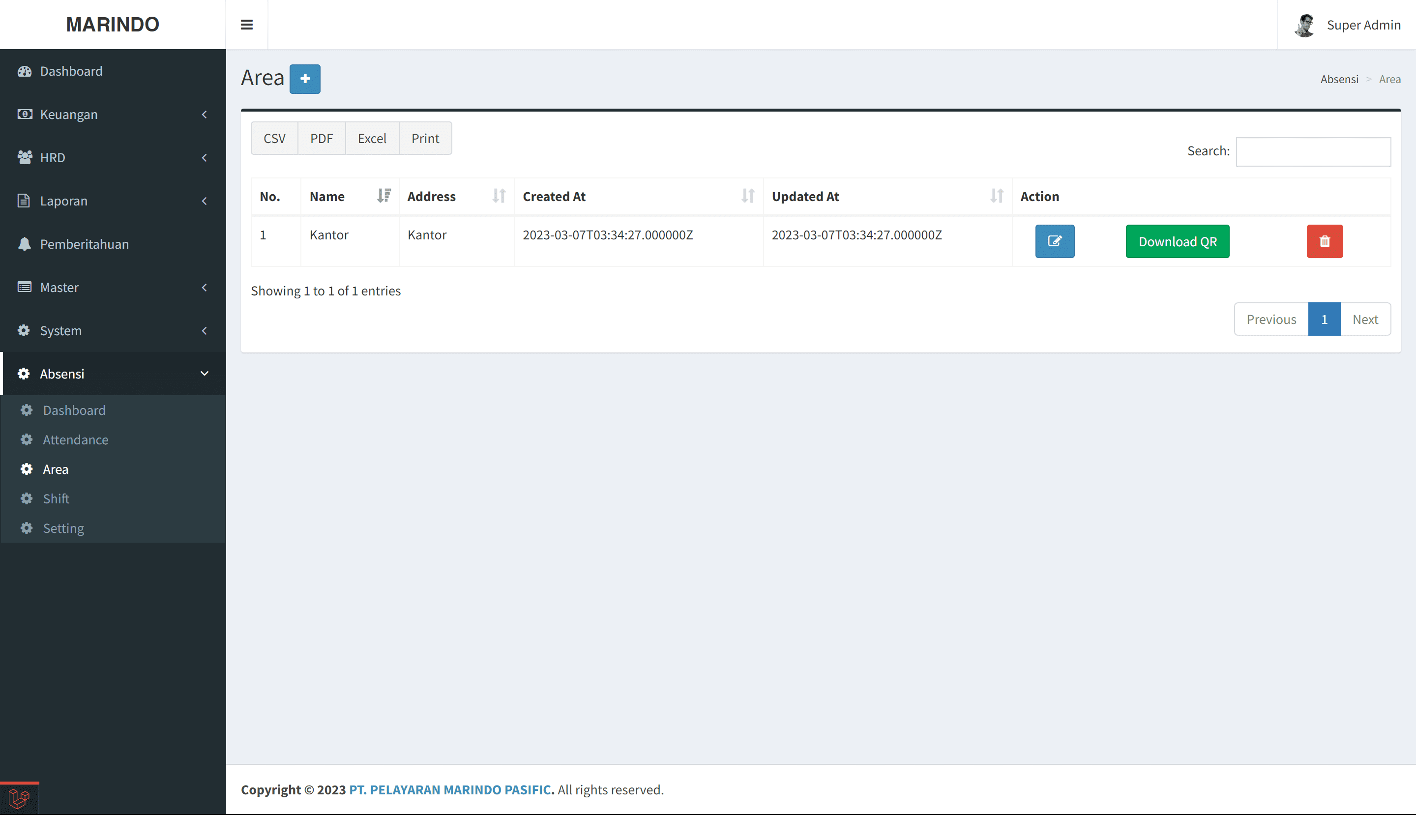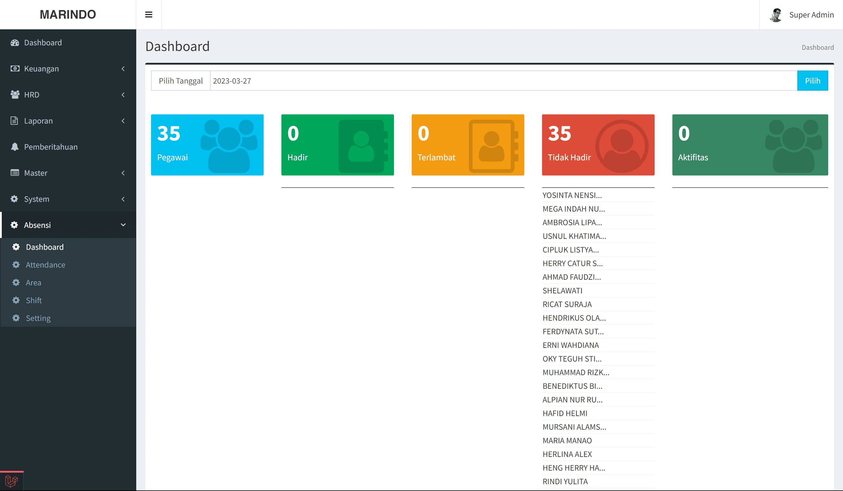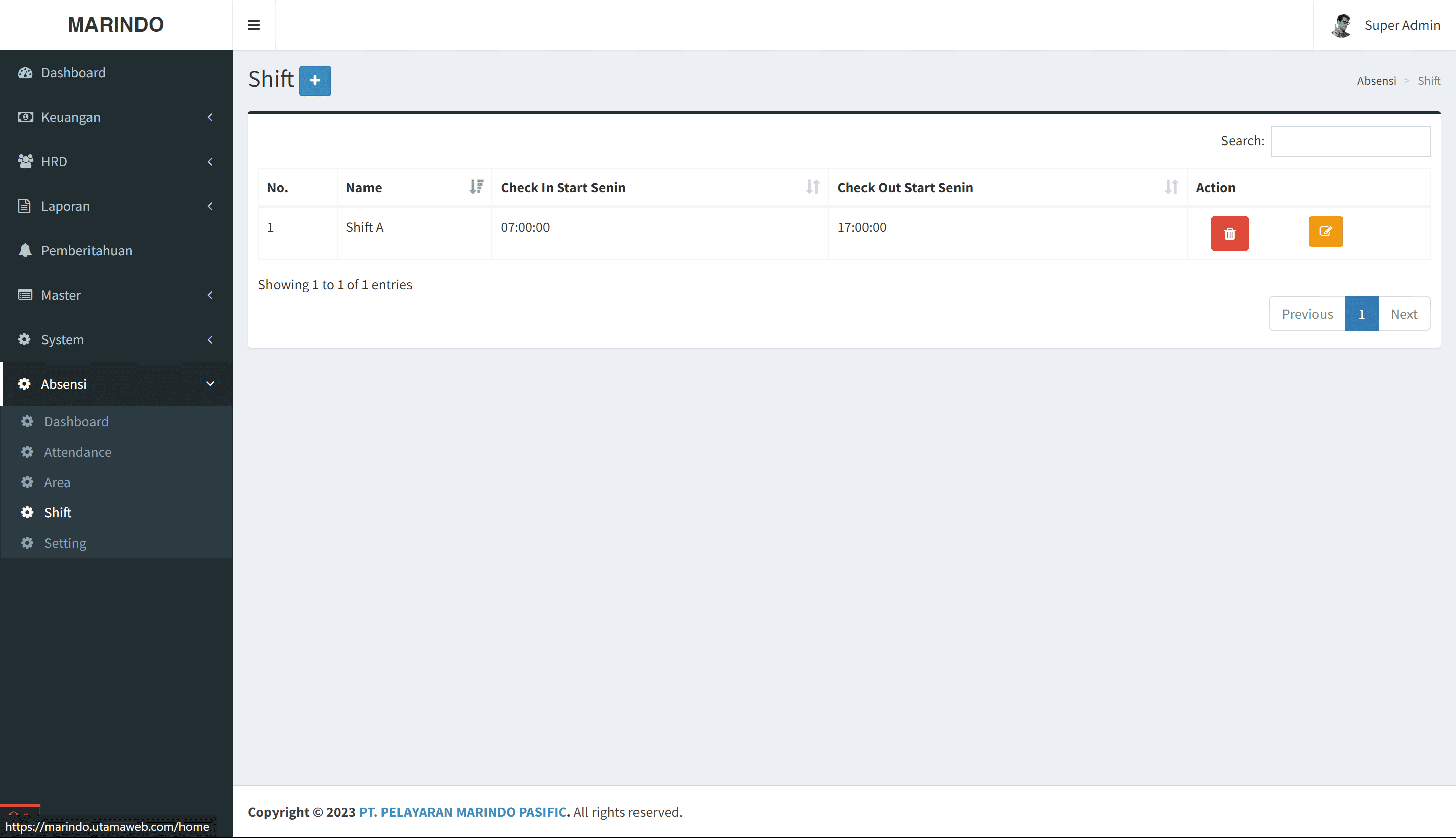 Data pengaturan absensi untuk MARINDO PAYROLL