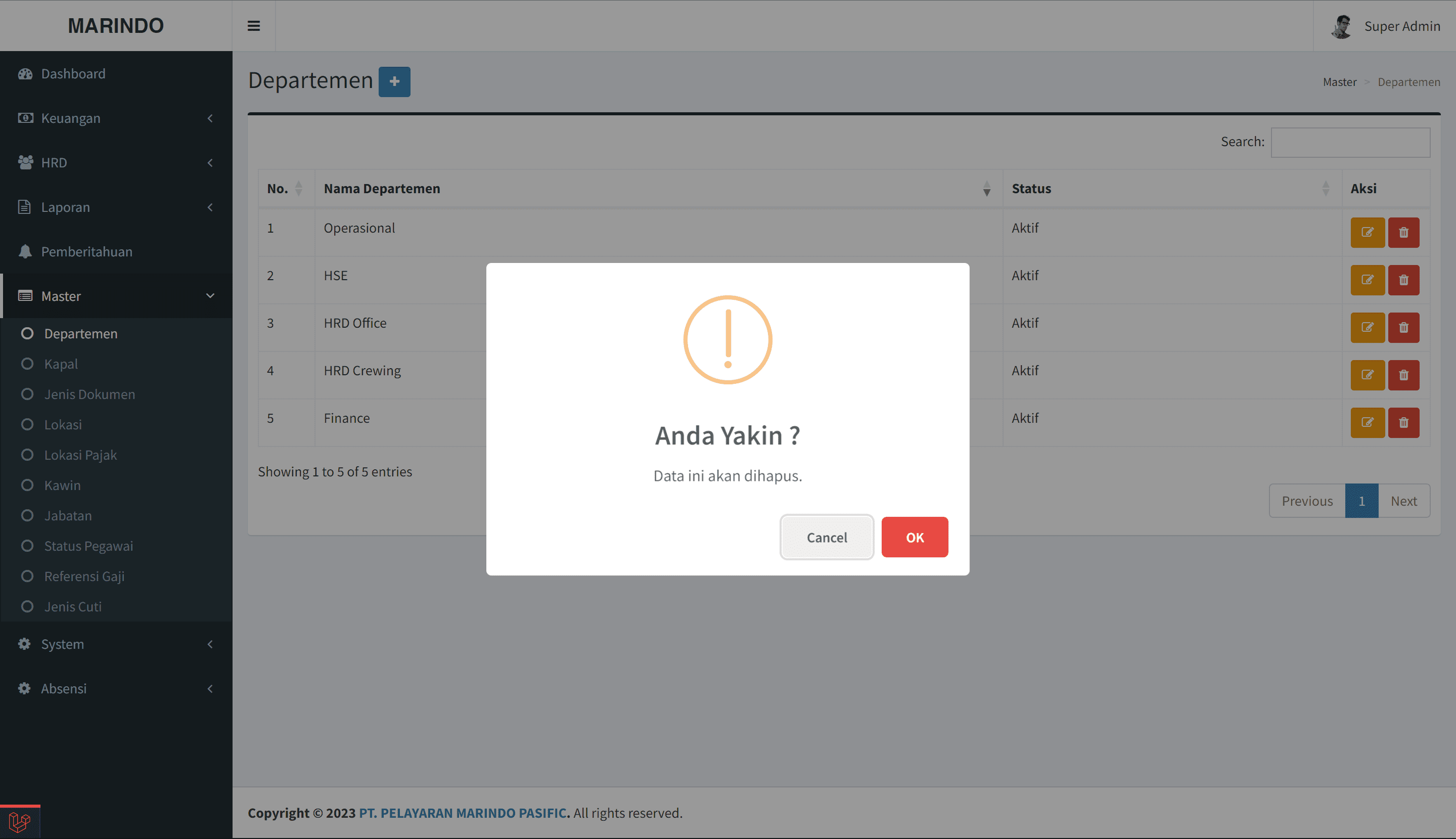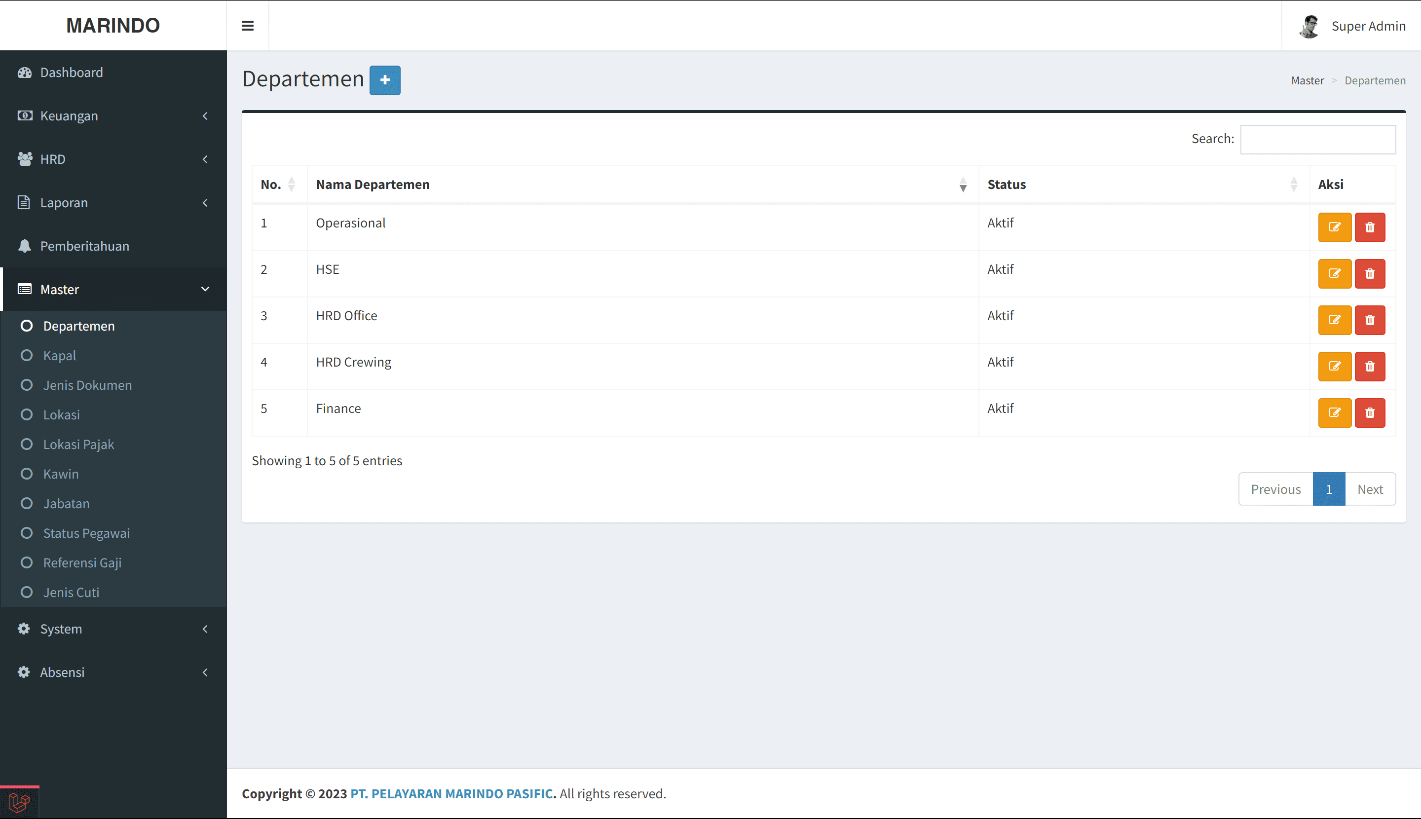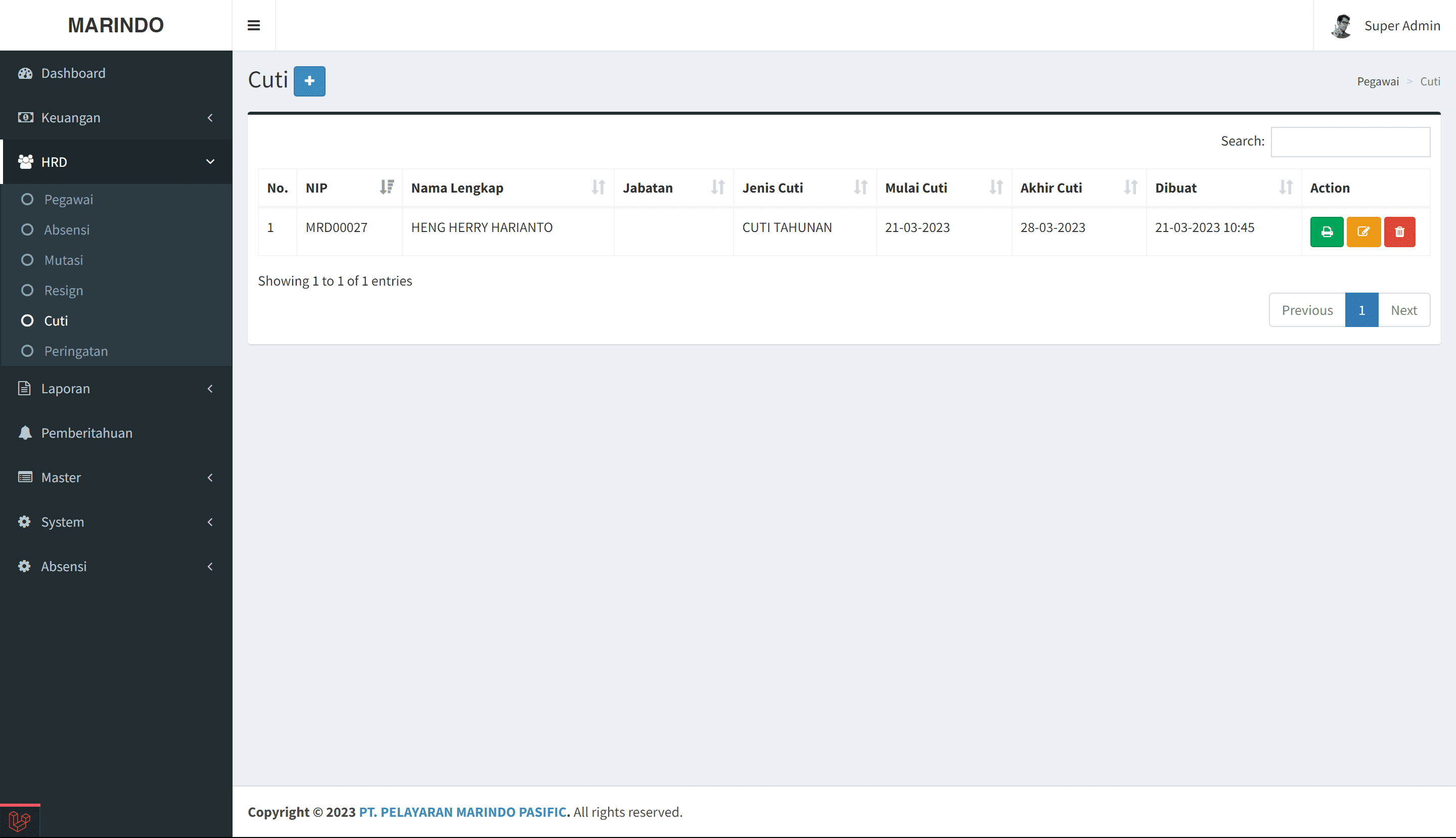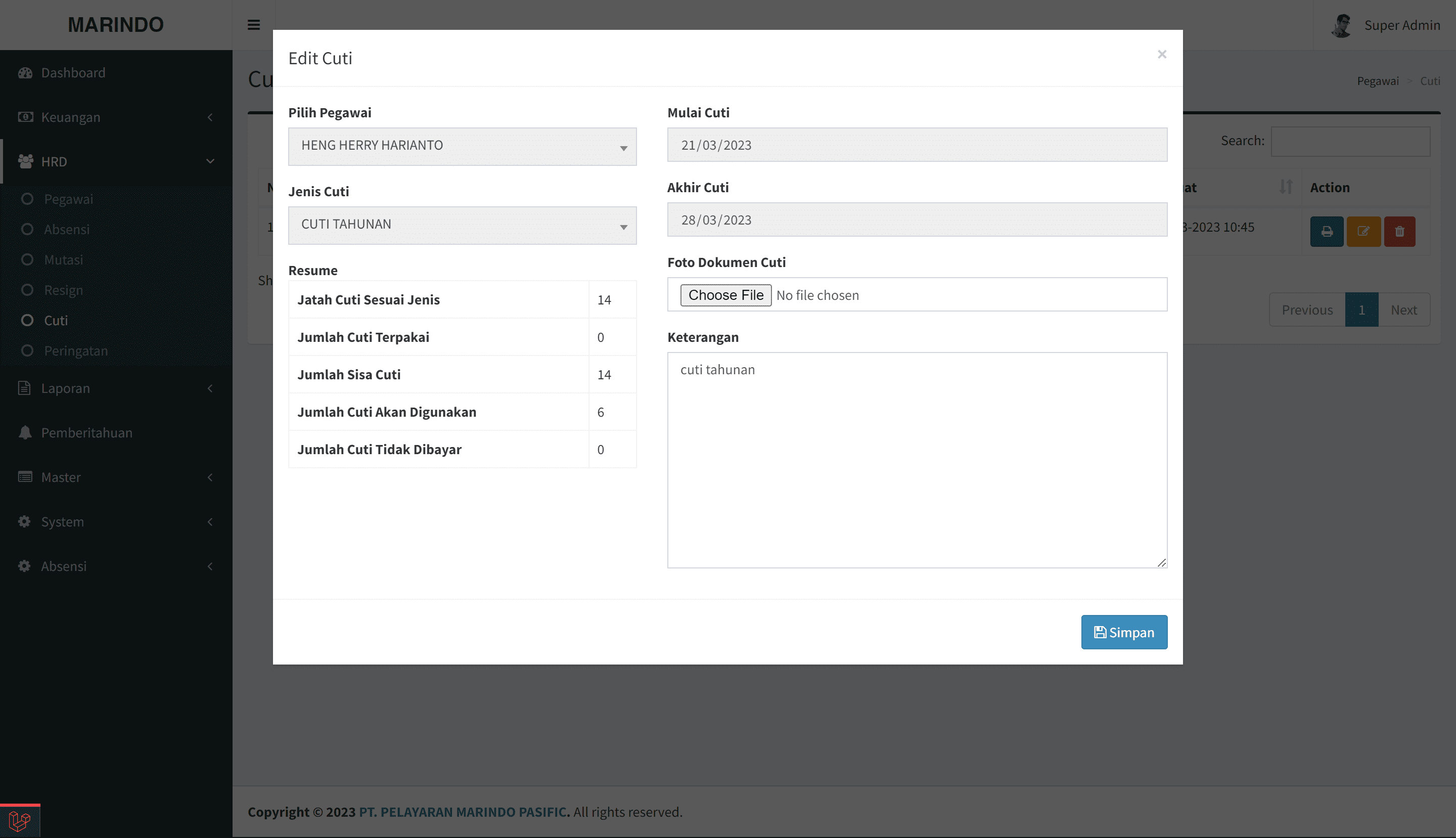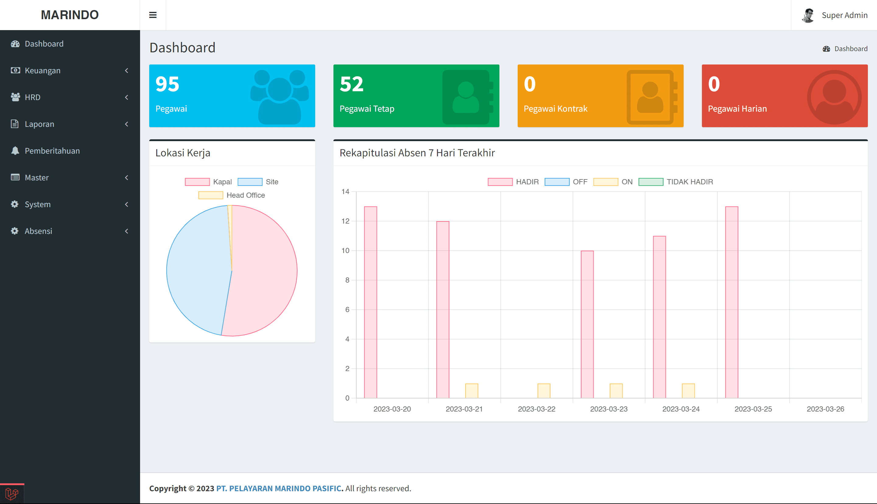 Data pengaturan absensi untuk MARINDO PAYROLL