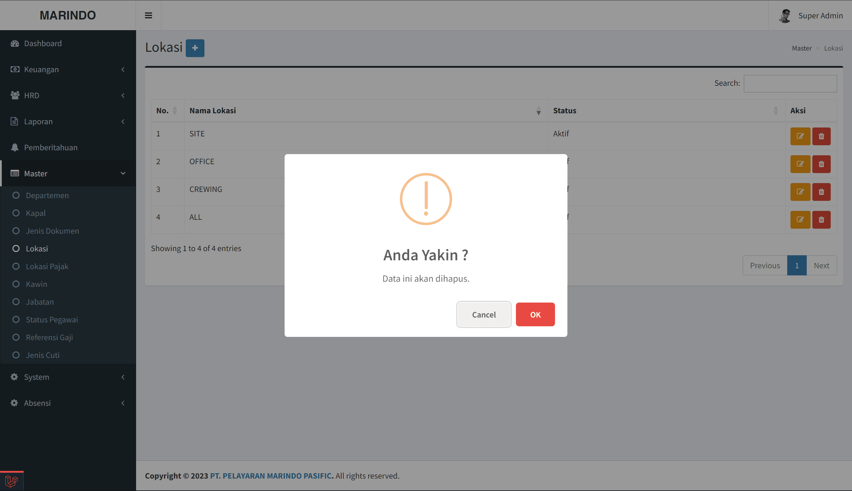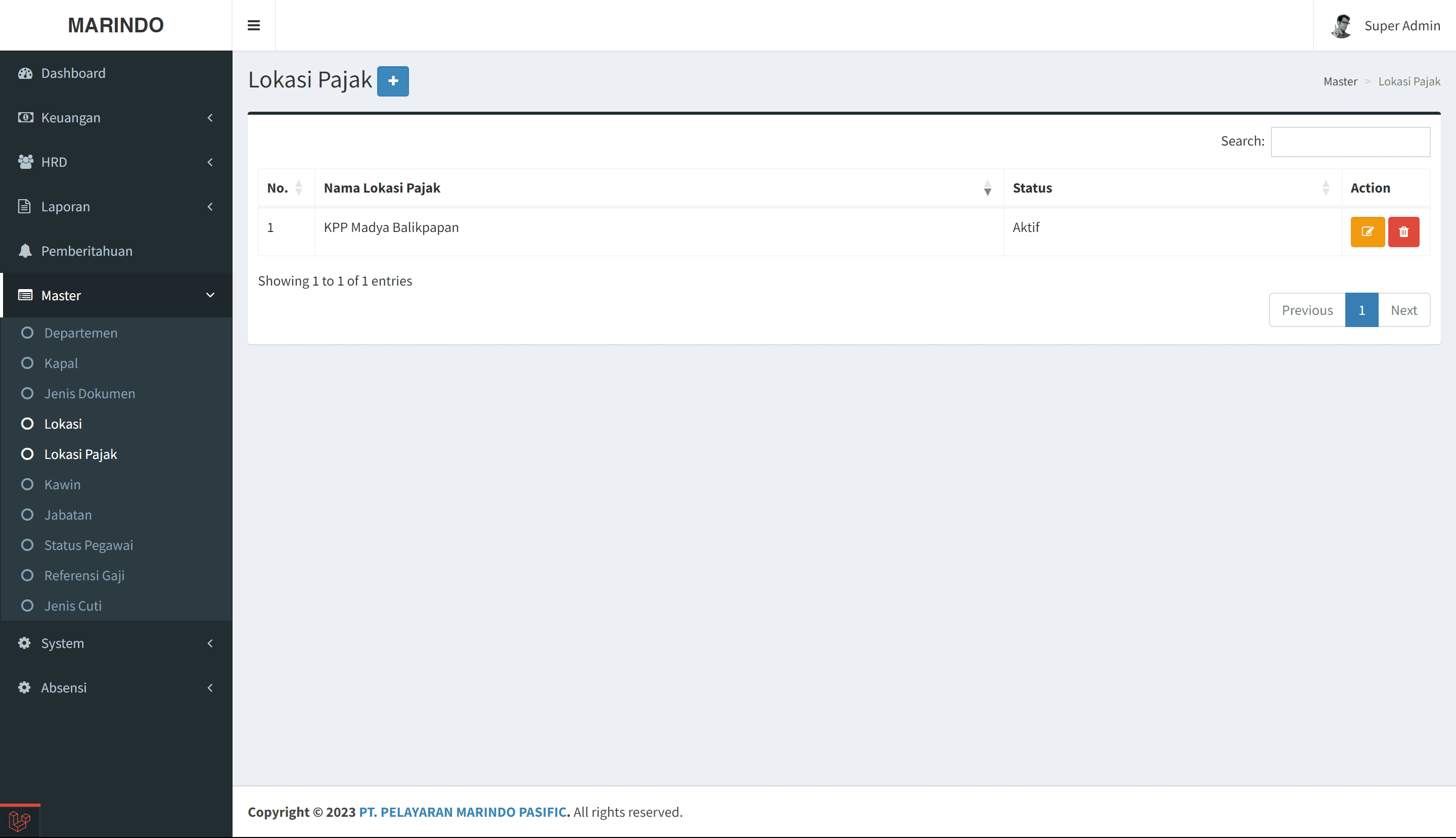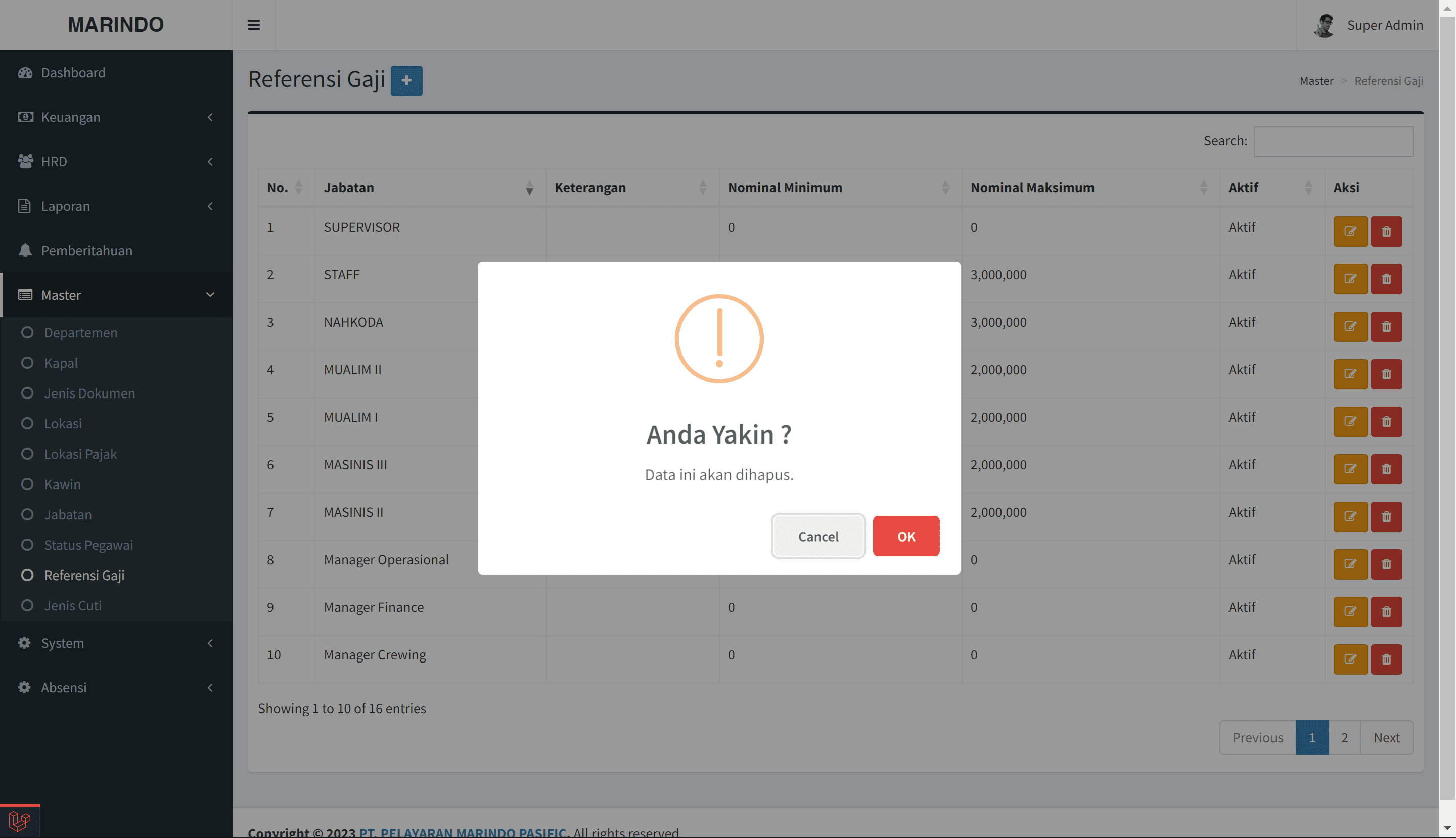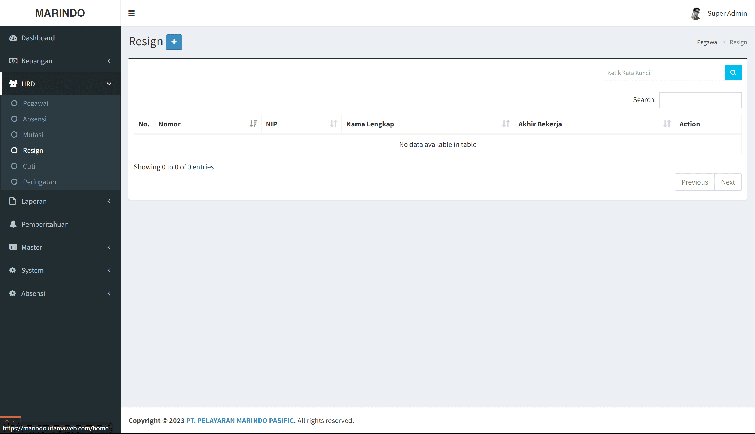 Data pengaturan absensi untuk MARINDO PAYROLL