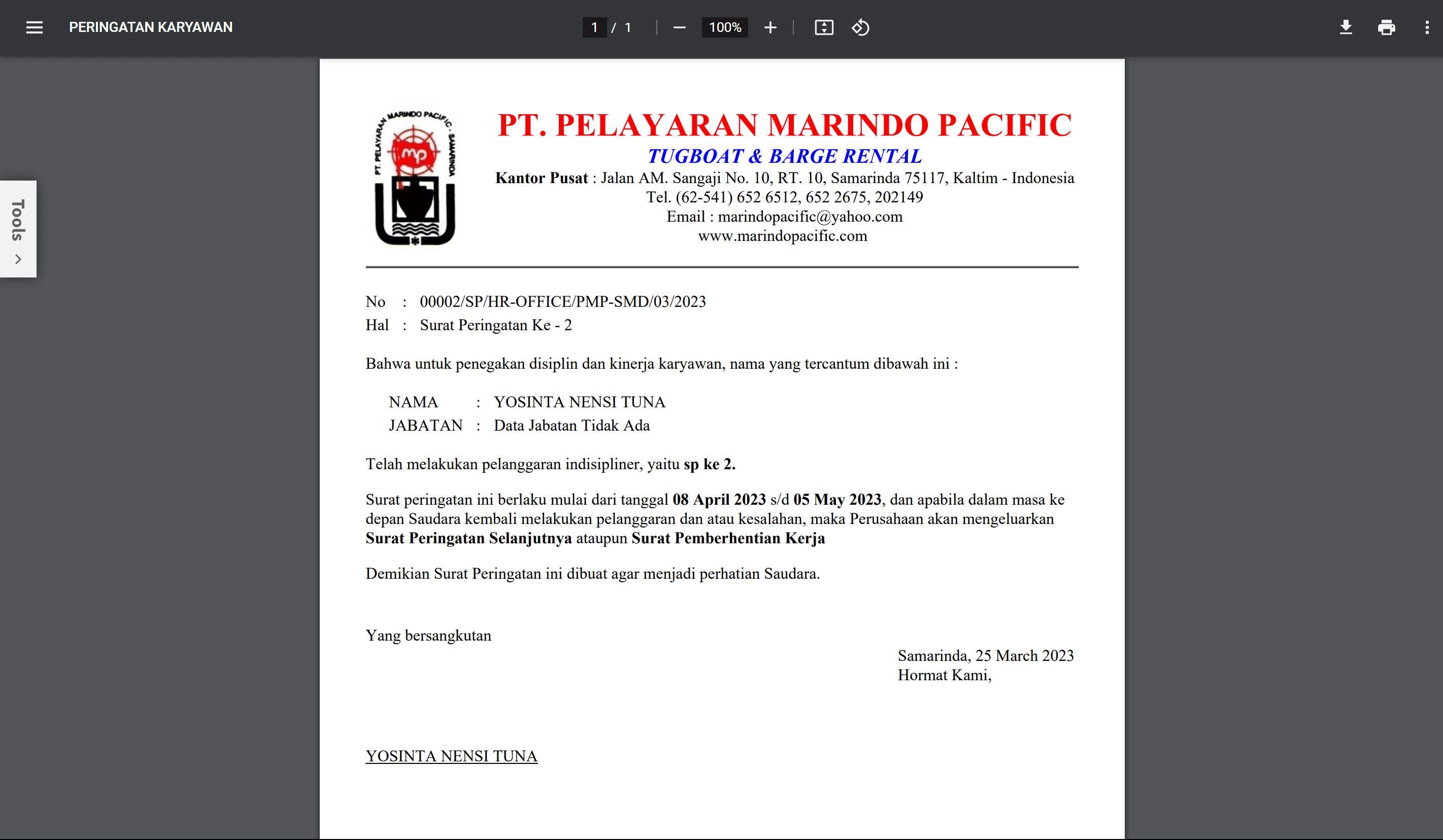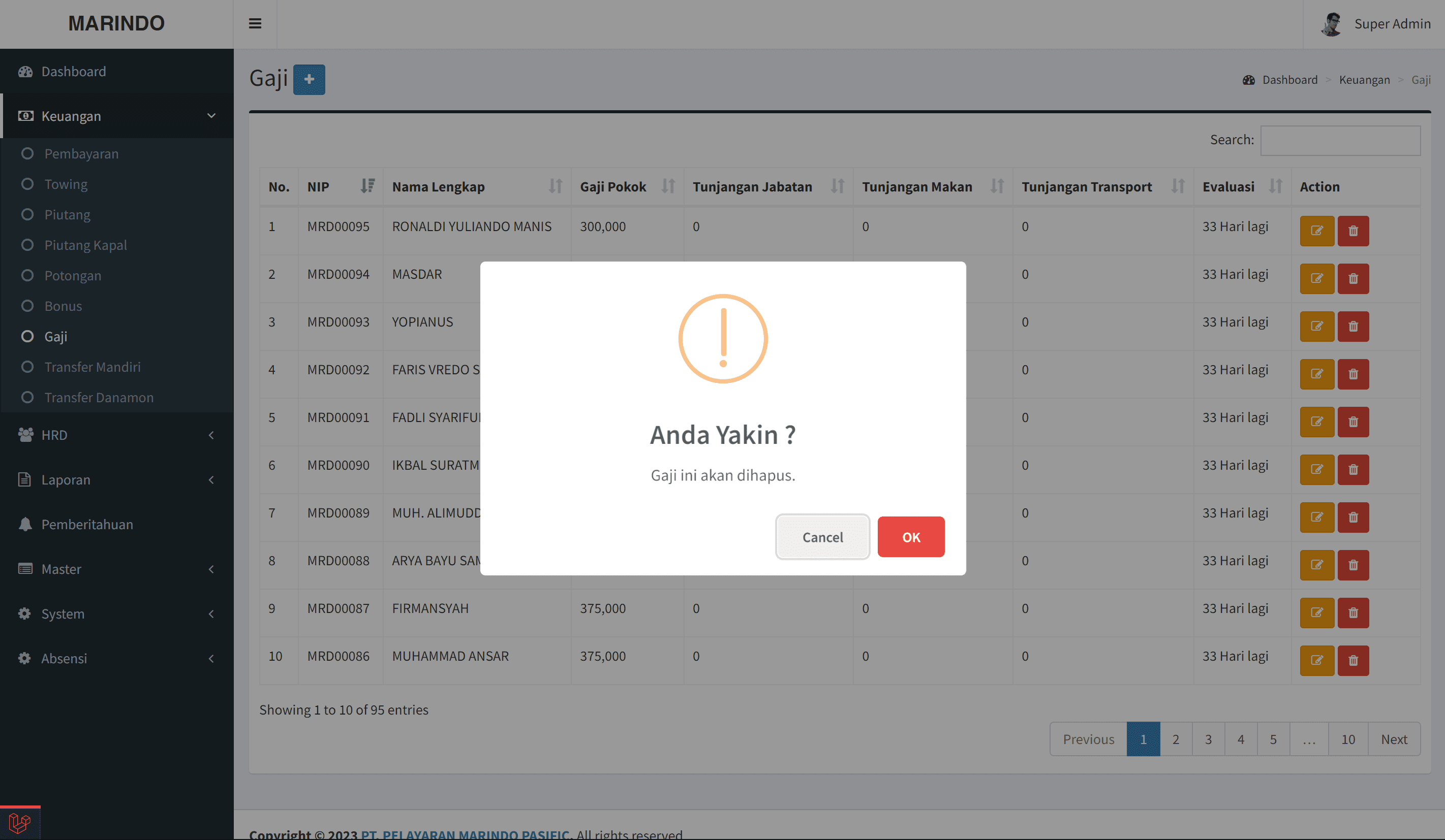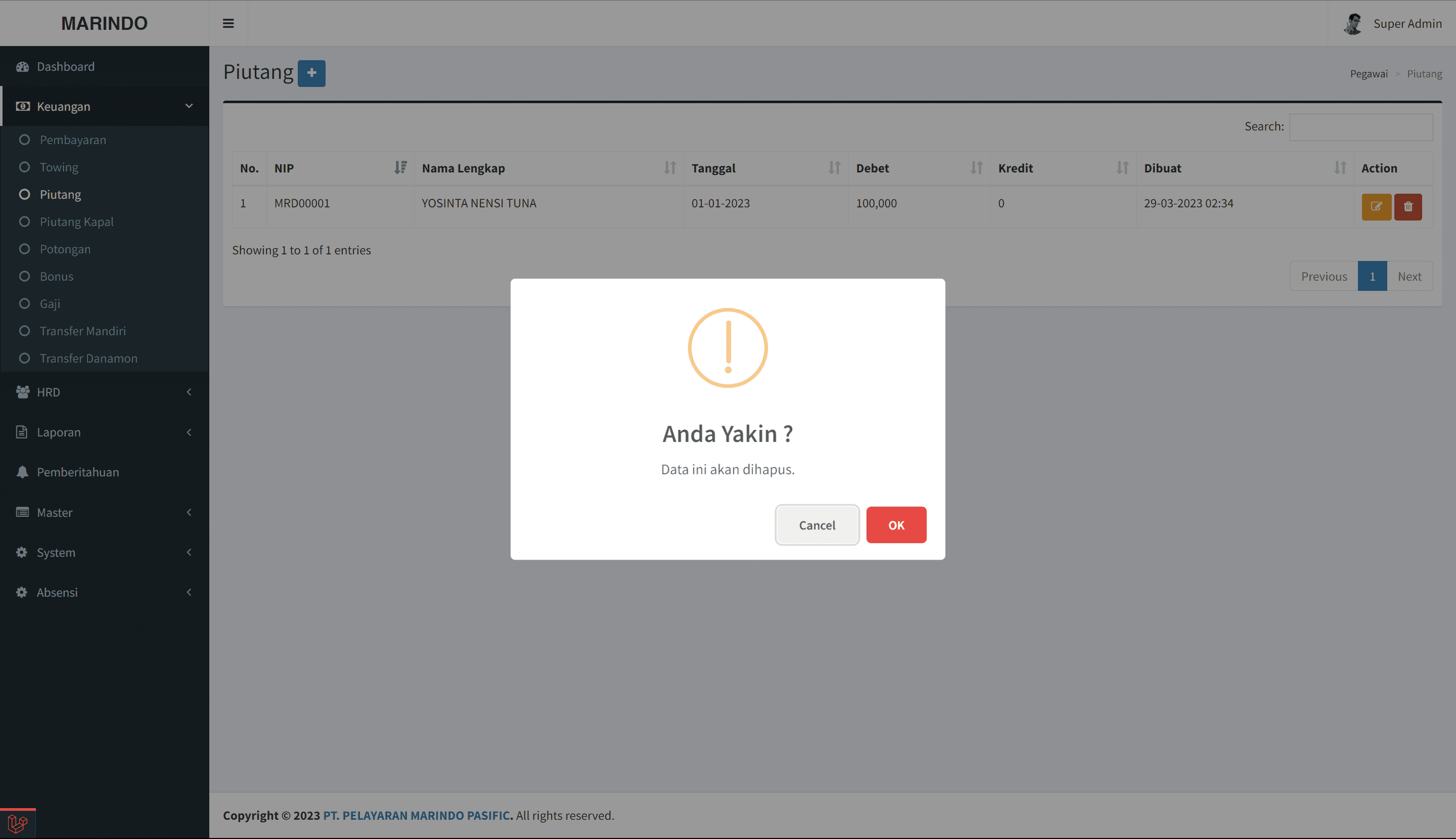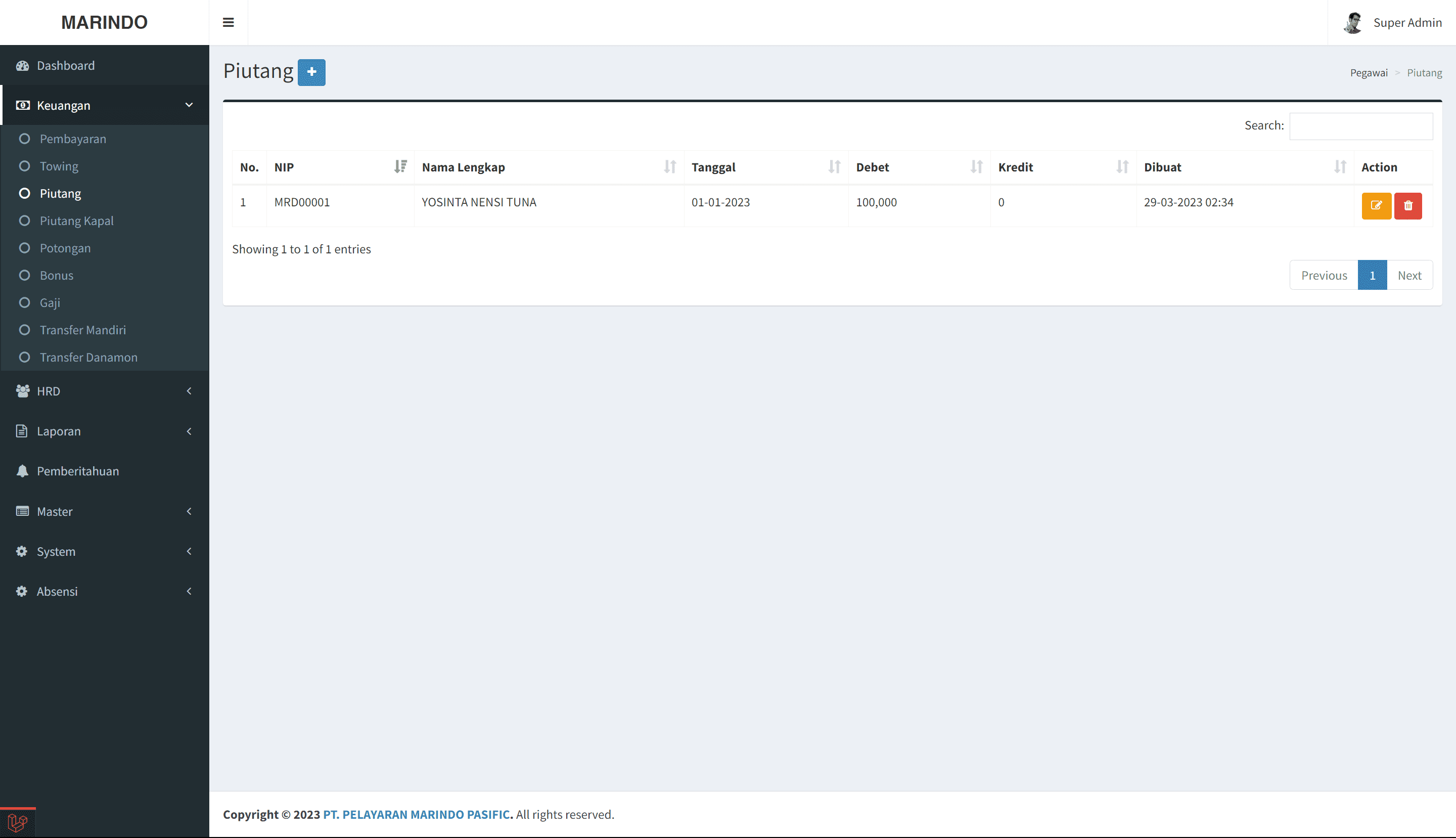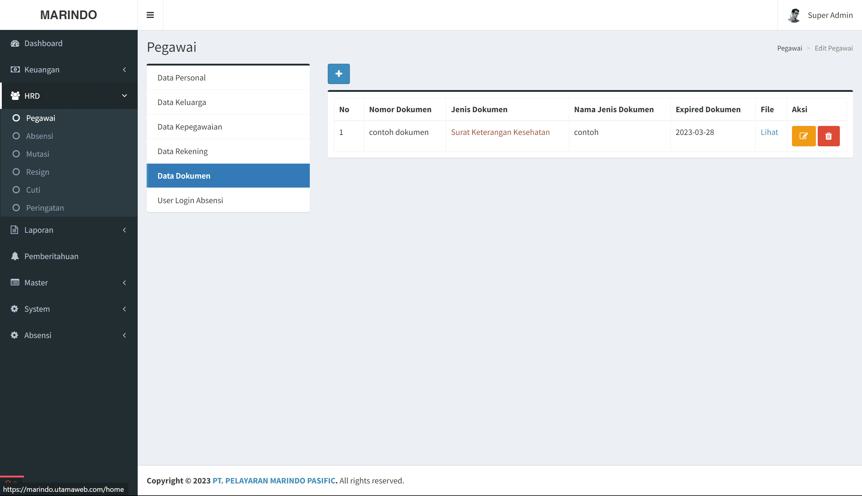 Data pengaturan absensi untuk MARINDO PAYROLL