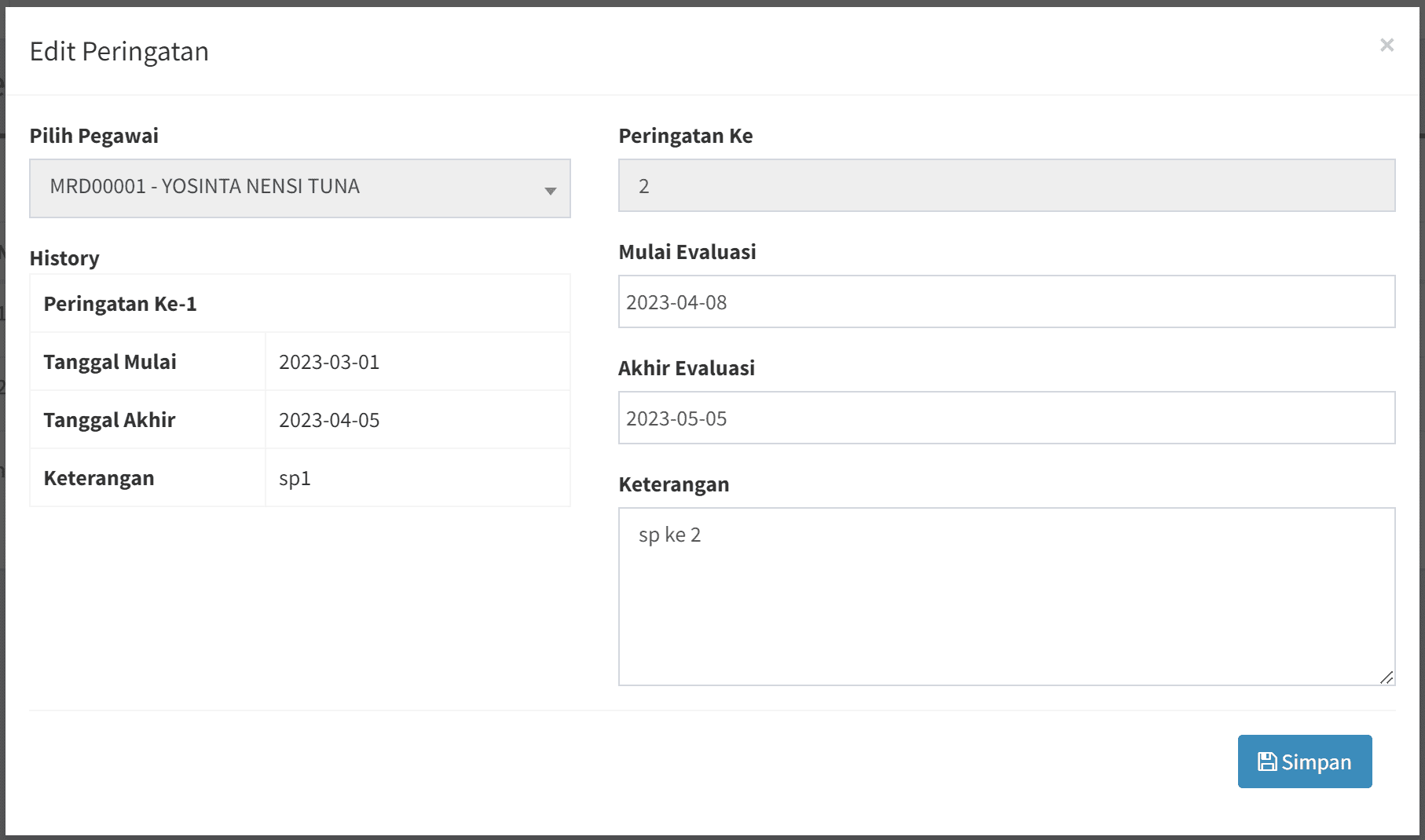 Tanggal AwaldanTanggal Akhirguna menampilkan data sesuai dengan tanggal yang diinginkanPada halaman attendance menampilkan data