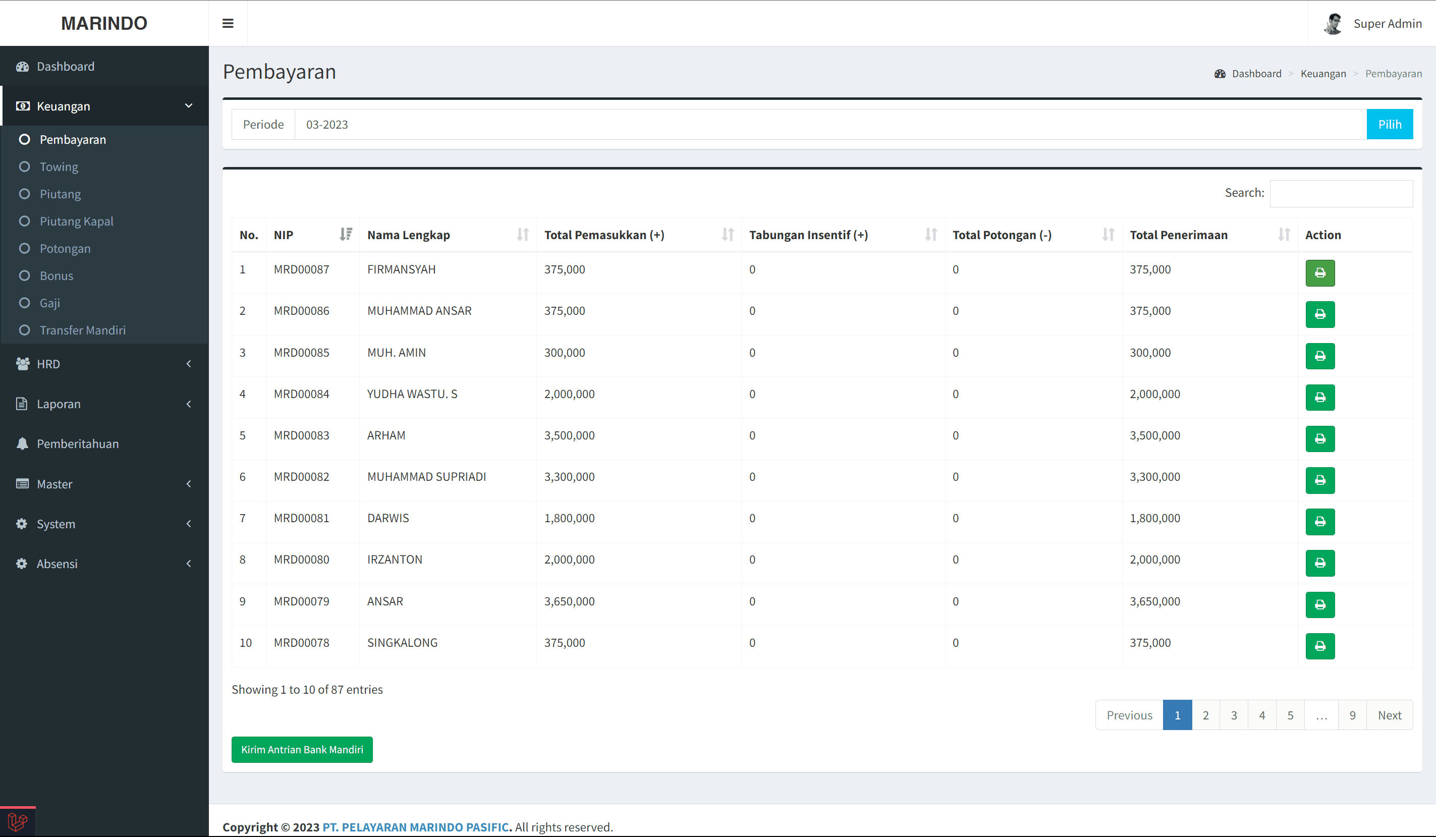 Mencetak data yang dinginkandan selanjutnya admin bisa menekan tombolKirim Antrian Ke Bank Mandiriuntuk memasukkan data pada bulan tersebut kedalam antrian pembayaran