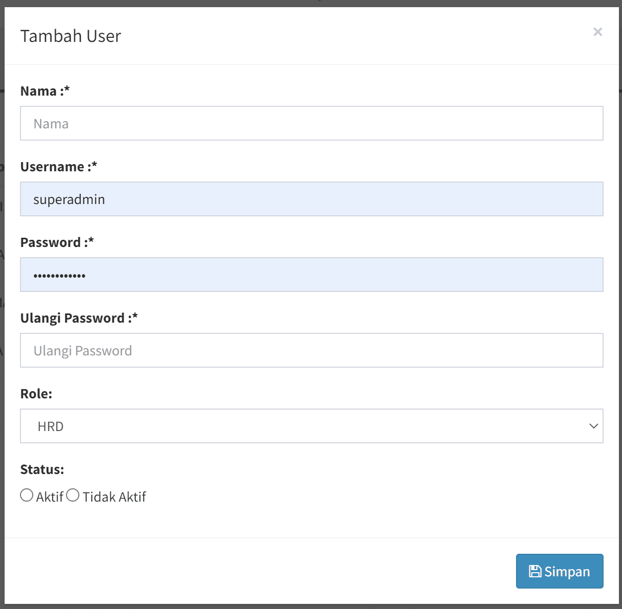 Apabila telah muncul seperti pada gambar diatas silahkan input Username dan Password sesuai dengan yang telah didaftarkan sebelumnya oleh superadmin.